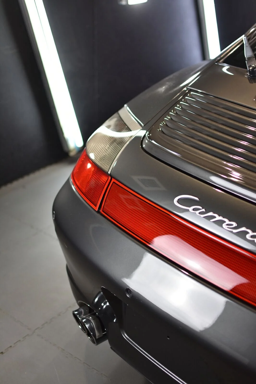 Stunning Porsche Carrera 4S the last of the true air-cooled Porsches, even just moving this car 10 feet into the unit you get a sense of how immediate and connected the car is with the road sitting in its low slung driving position, looking out onto iconic Porsche bonnet shape. The C4S was with us for 7 days in total, seeing a massive transformation to the exterior and chassis.